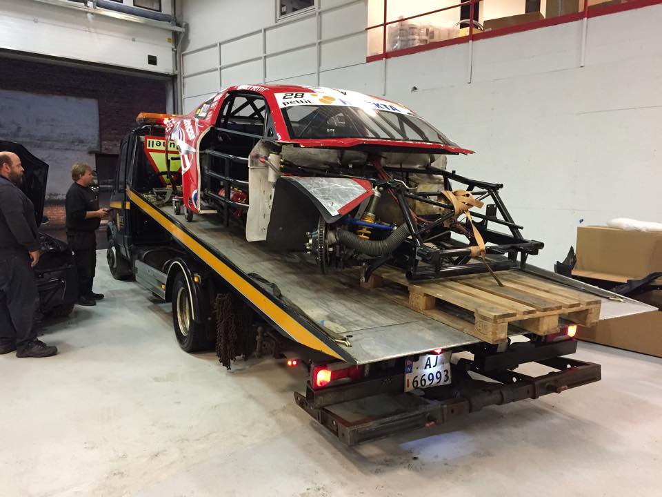 Jeg dro til DK for å hente det som var igjen av min løpsbil. Et trist syn for å si det mildt...