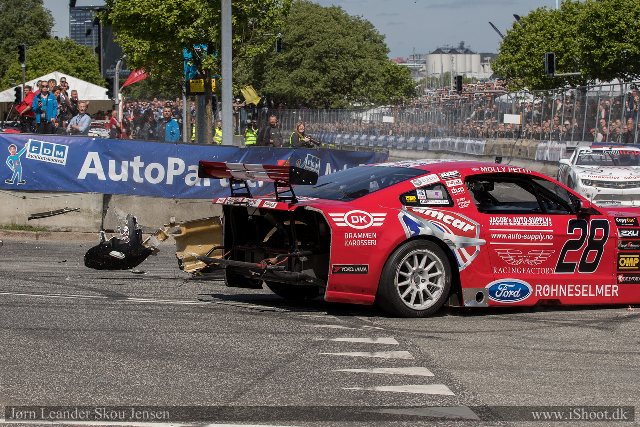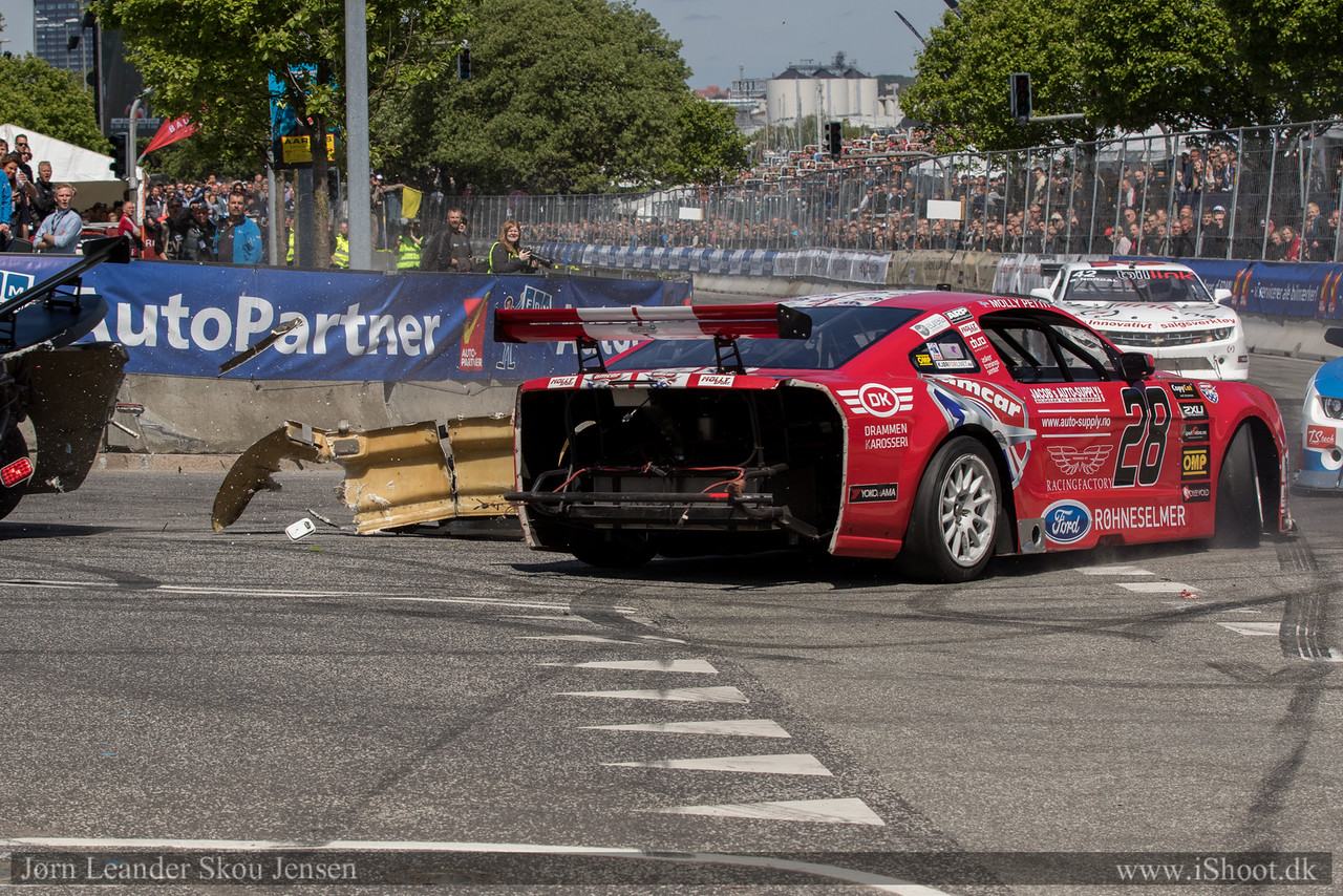 Søndag 24. mai ble jeg passasjer i min egen løpsbil da bremsene sviktet under gateløpet Classic Race Aarhus i Danmark. I en fart på 216 km/t treffer jeg en konkurrent og sender både han og meg selv i betongveggen.