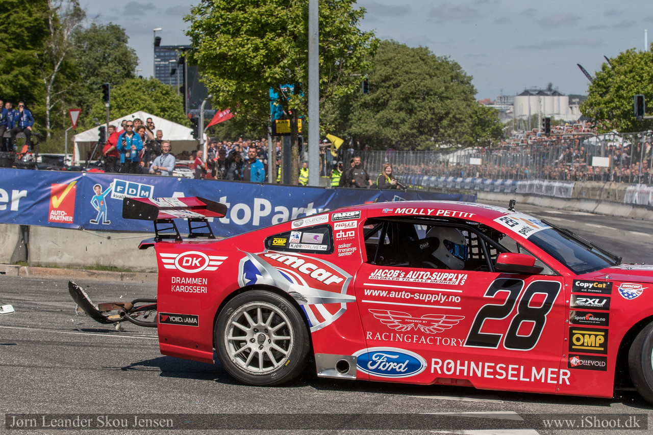 "For Mollys vedkommende er det et totalt bremsesvigt der gør at bilen ikke stopper før den rammer Høyer, selvom det naturligvis er mega uheldigt for Høyer, så var hans bil, nok årsager til at Molly slap uden skader. Molly rammer Høyer med 216 km/t. Vi ved med sikkerhed at den forreste bremsecylinder fejlede og bremsen forsat var i bund efter skaden. Vi har tidligere set samme tilfælde, men de fleste gange er det opdaget ved udluftning af bilerne. Dog er det sket på banen for både Ronnie Vestengen og Bjarne Nordahl.